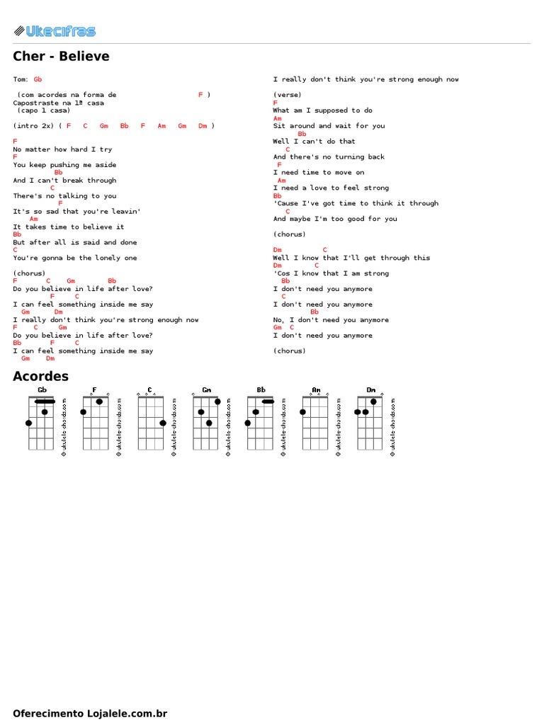 Do you believe in life after love i can feel something inside me say i really don't think you're strong enough do. F, em, g, am, c, dm. Recommended by the wall street journal. Learn how to play believe by cher on guitar now! Learn to play guitar by chord / tabs using chord diagrams, transpose the key, watch video lessons and much more.